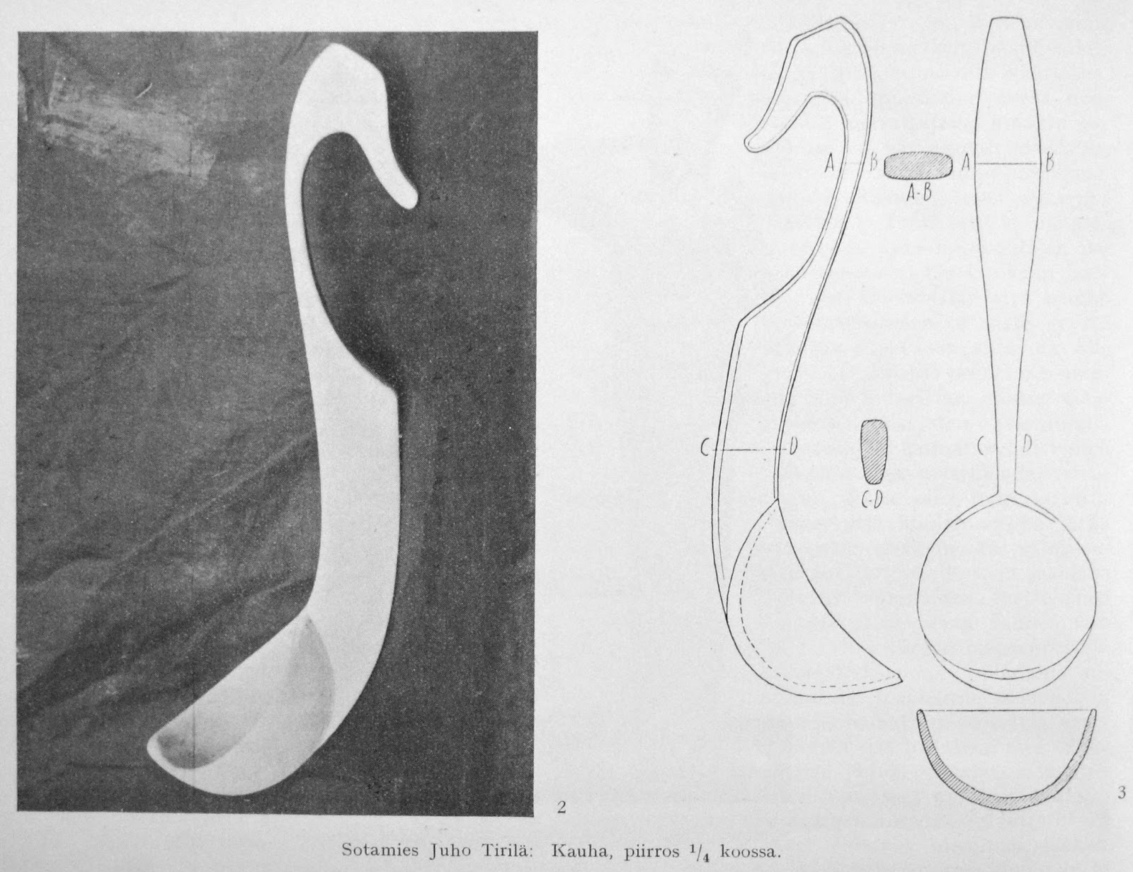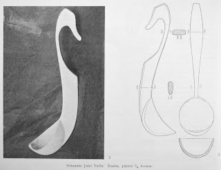 This design by Private Juho Tirilä won a prize in a competition among the Finnish soldiers in 1942.I wonder if servicemen and women would be keen to take up spoon carving these days. I think it might help to ease the stress of what they have to go through a little.